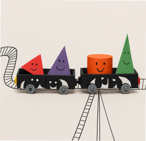 Età: 6-7 anni. Un’esplorazione del mondo dei solidi attraverso giochi come il twister, il tiro al bersaglio, il bowling e giochi di equilibrismo.