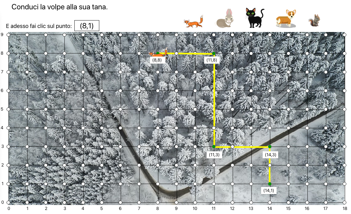 Si tratta di 7 attività sul piano cartesiano per allievi dagli 8 agli 11 anni che permettono di eseguire percorsi su griglia e individuare coordinate di punti.