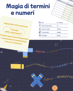Il gioco associato a questa canzone è “Magia di termini e numeri”; si tratta di tradurre espressioni linguistiche in espressione matematiche, per poi calcolare il risultato facendo attenzione a interpretare correttamente i termini delle operazioni.